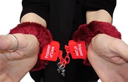 - Manette in Plastica e Pelo Rosso Bordeaux con Chiave e scritta "Prisoner of love" e chiave